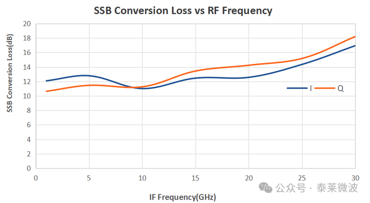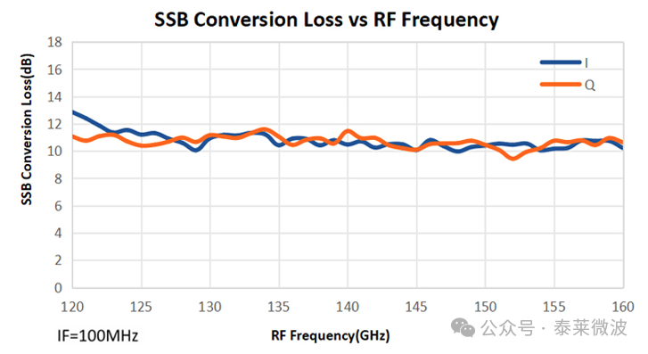 变频损耗低至11dB,减少信号衰减,提升系统整体信噪比(SNR),尤其适合高灵敏度接收机应用。