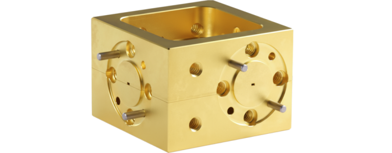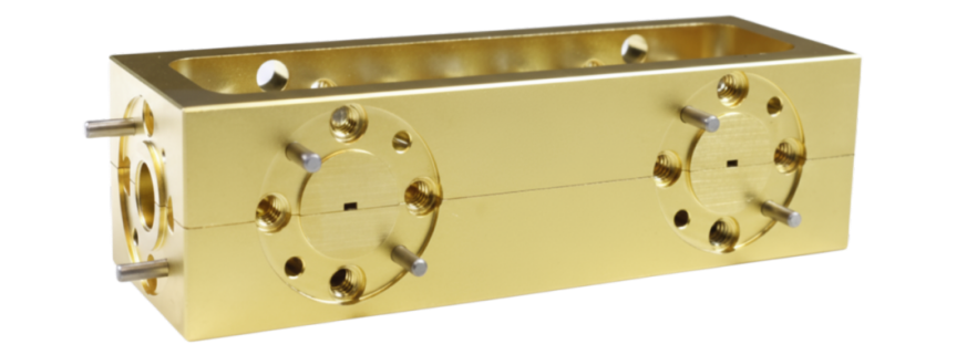 下图为140-220 GHz四端口双向耦合器。四端口双向耦合器可在18-500GHz的整个波导频段内提供多频段、多耦合度的选择且都具备优异的方向性。