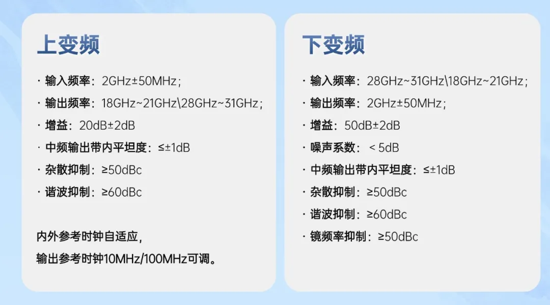 该模块具备杂散抑制高、内外参考自适应、内部集成跳频、固定本振等技术优势,为系统带来极致的信号纯净度与操作灵活性。